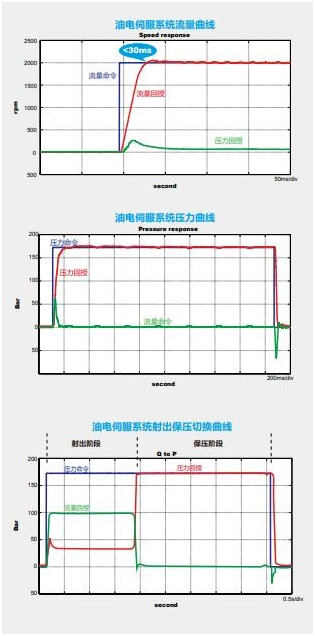 油電伺服系統(tǒng)架構 伺服驅動器從射出成型機控制器獲得壓力及流量命令后,與實際壓力和轉速回授進行PID 演算,計算出合適的控制量來驅動伺服電機與油泵,因此控制系統(tǒng)響應快、重復精度高。